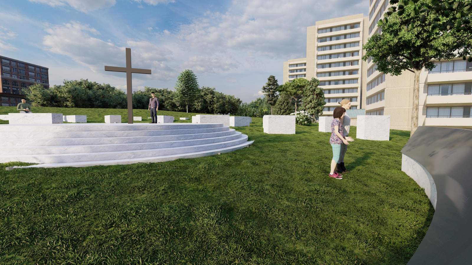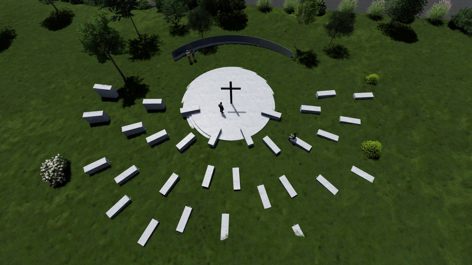 Той се състои от блокове с вариращи размери, разположени радиално към подиум, в центъра на който е разположен мемориален кръст, обърнат на Изток. Поради денивелацията, стъпала водят от подиума надолу и на изток към извита стана, върху която е списъка с близо триста имената на убитите след 09.09.1944г. без съд и присъда, безследно изчезналите, осъдените на смърт от Великотърновско и на изпълнените на това място смъртни присъди.